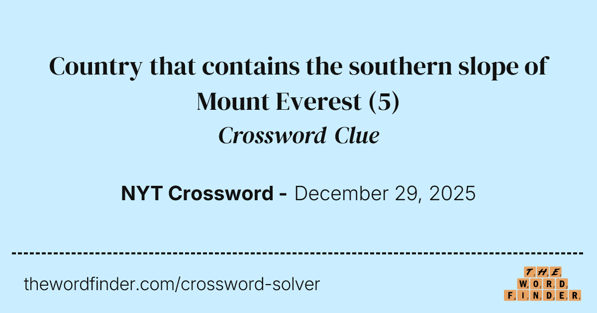 Country that contains the southern slope of Mount Everest Crossword Clue