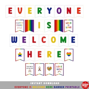 Everyone is Welcome Here Pride Banner Printable LGBTQ Rainbow Wall
