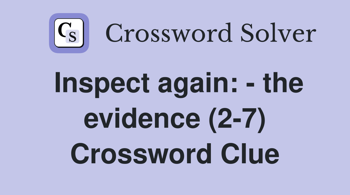 Inspect again: the evidence (2 7) Crossword Clue Answers