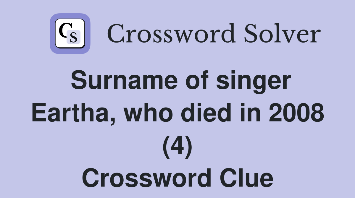 Surname of singer Eartha who died in 2008 (4) Crossword Clue Answers