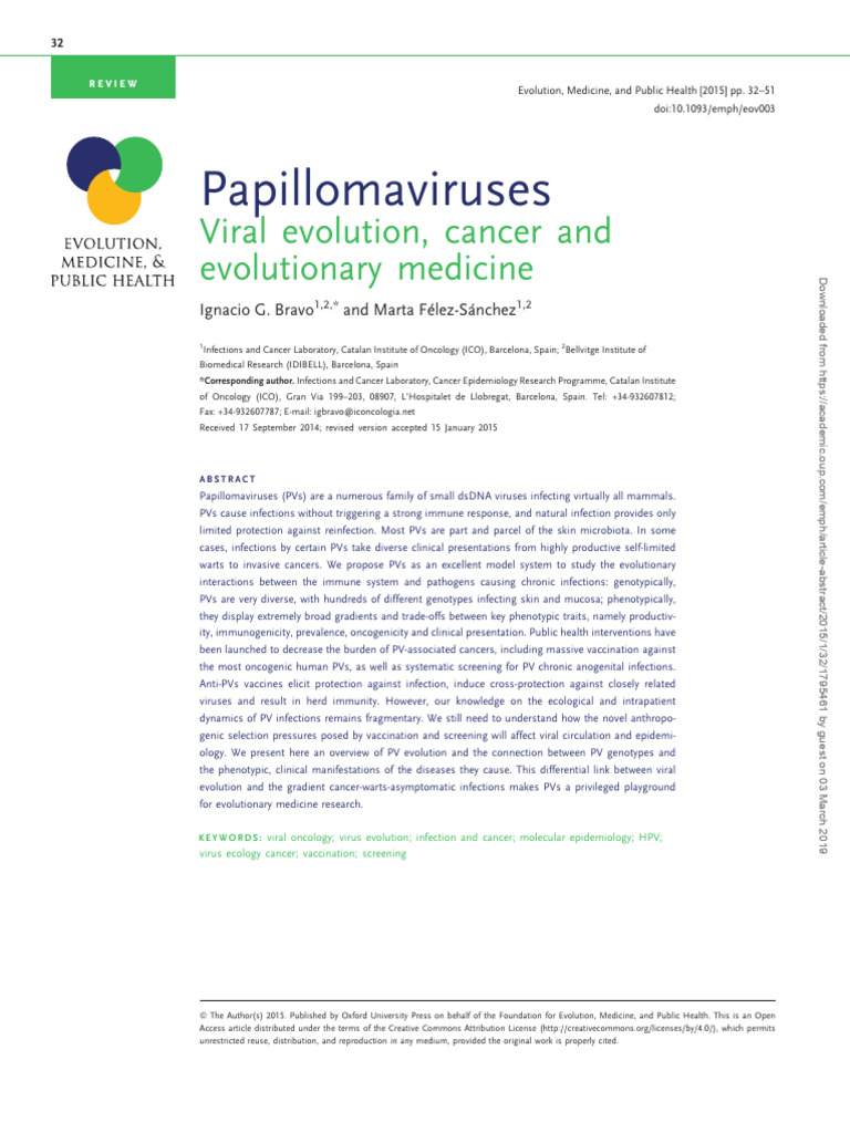 Papillomaviruses Viral Evolution Cancer and Evolutionary Medicine