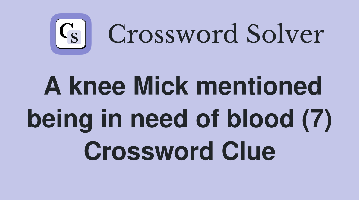 A knee Mick mentioned being in need of blood (7) Crossword Clue