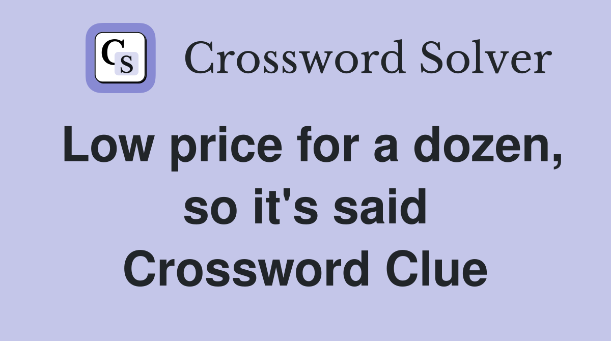 Low price for a dozen so it #39 s said Crossword Clue Answers
