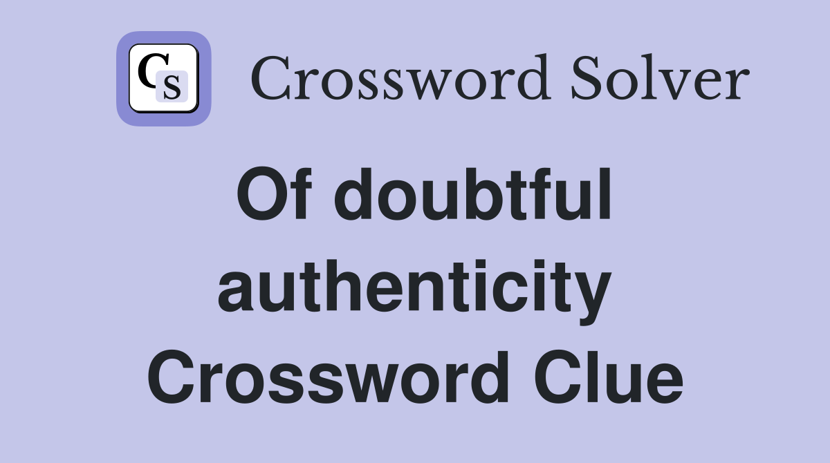 Of doubtful authenticity Crossword Clue Answers Crossword Solver