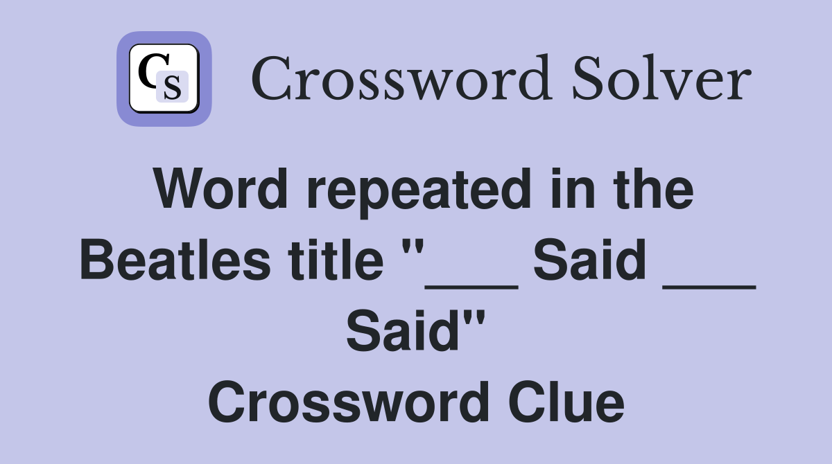 Word repeated in the Beatles title quot Said Said quot Crossword Clue