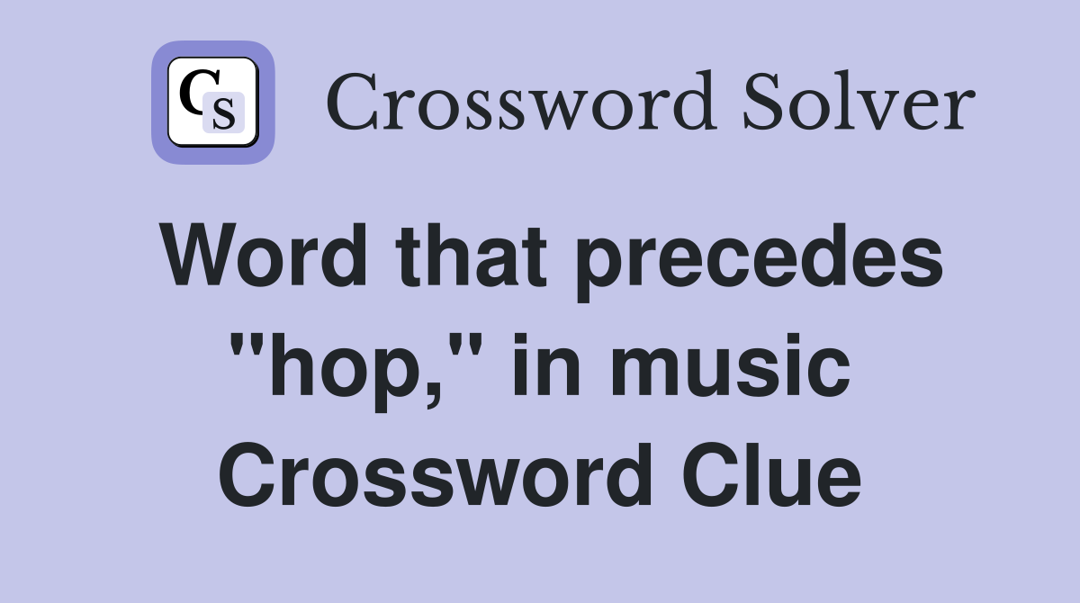 Word that precedes quot hop quot in music Crossword Clue Answers Crossword