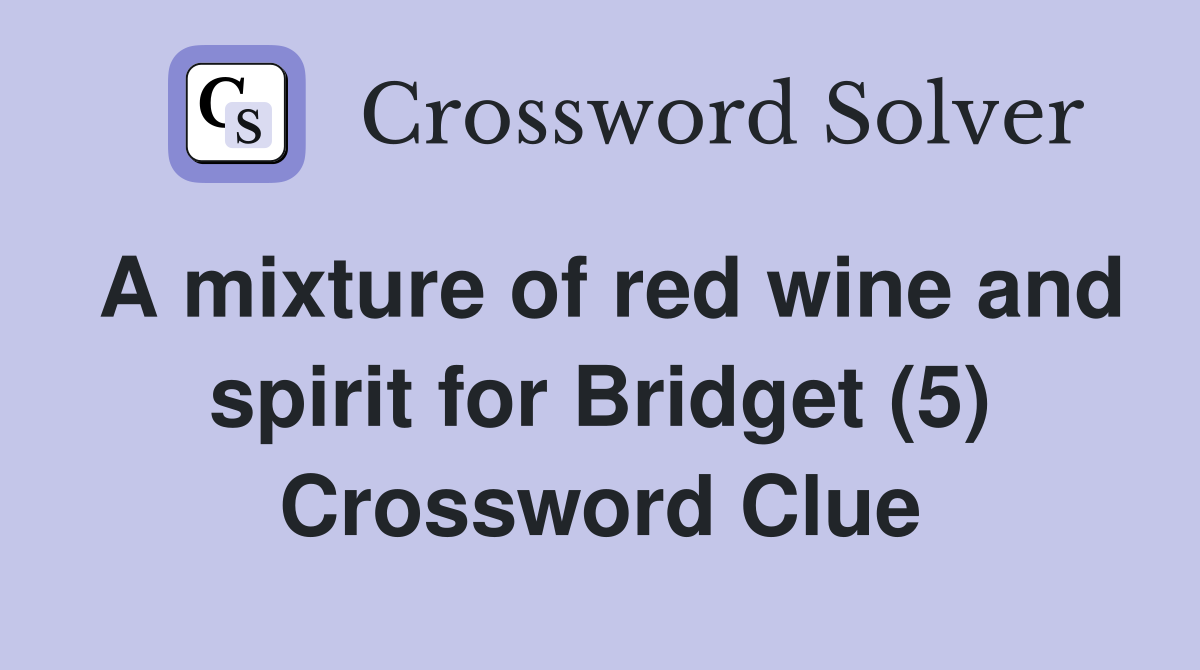 A mixture of red wine and spirit for Bridget (5) Crossword Clue