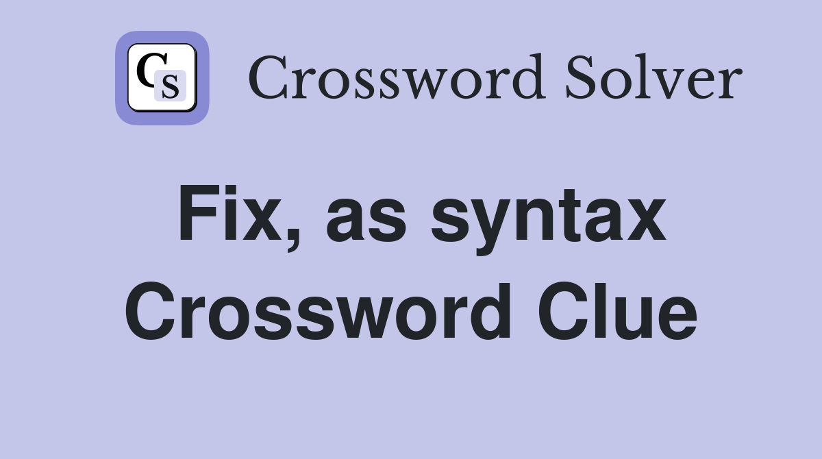 Fix as syntax Crossword Clue Answers Crossword Solver
