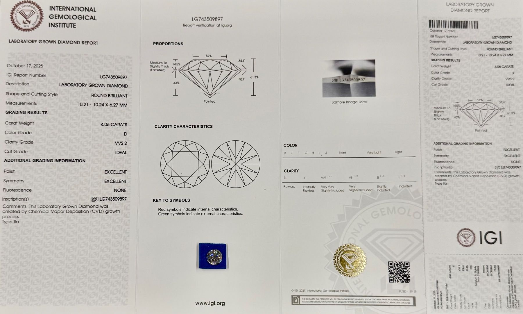💎 4 06ct Diamant D VVS2 Ideal Cut Ex Ex IGI Zertifikat💎 (Neu und