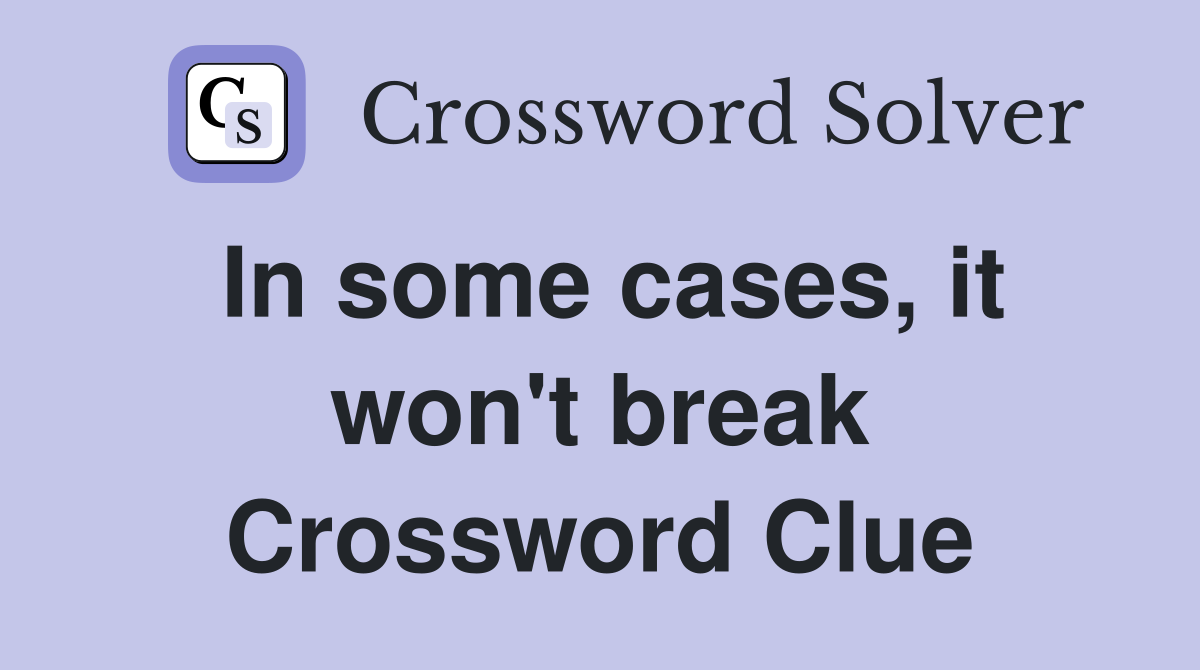 In some cases it won #39 t break Crossword Clue Answers Crossword Solver
