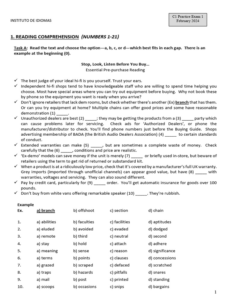 C1 Feb 2024 Practice Exam PDF Meat Diet (Nutrition)