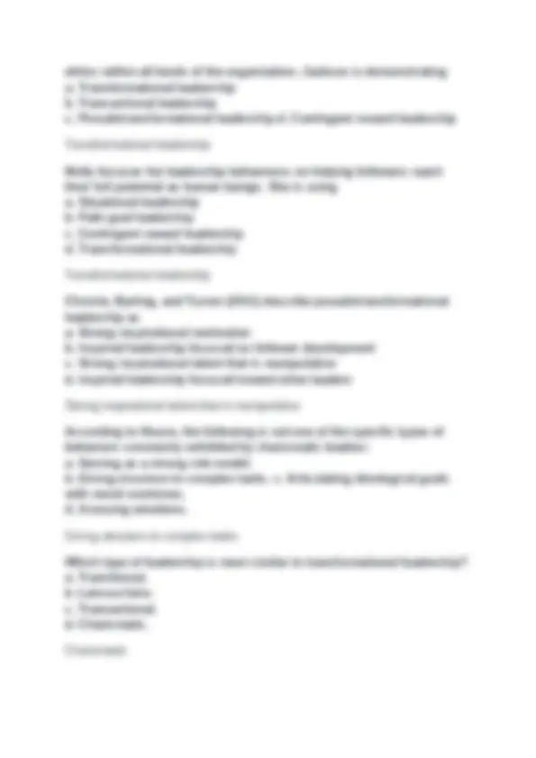 MQM 382 EXAM 3 (Transformational leadership) Exam Study set with 100%