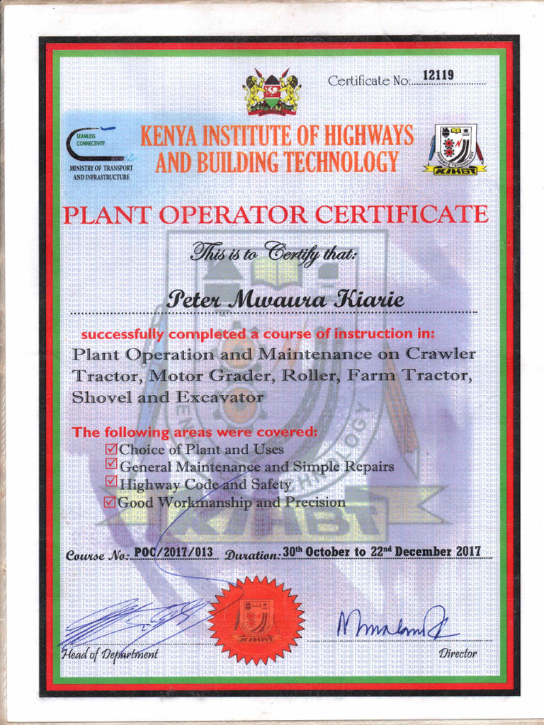 Plant Operator Certificate PDF