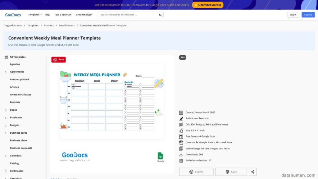 Grocery List and Meal Planner Excel Sheet Meal Plan Template Etsy