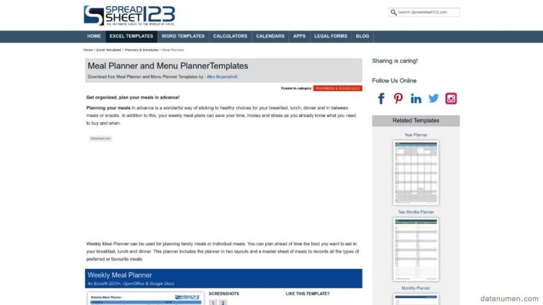 11 Best Excel Meal Plan Template Sites (2024) FREE