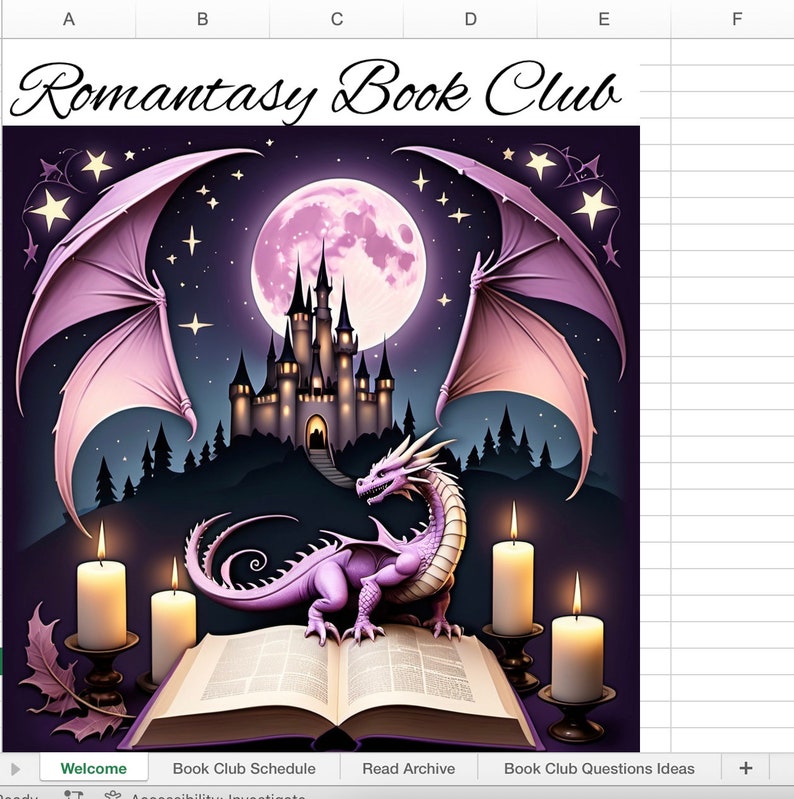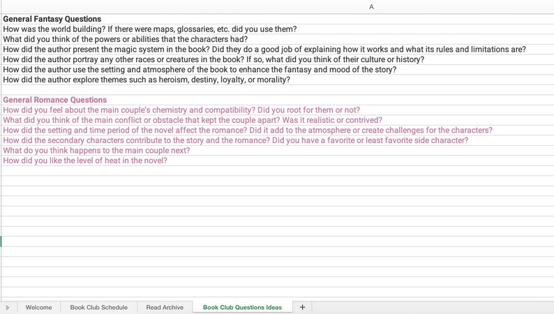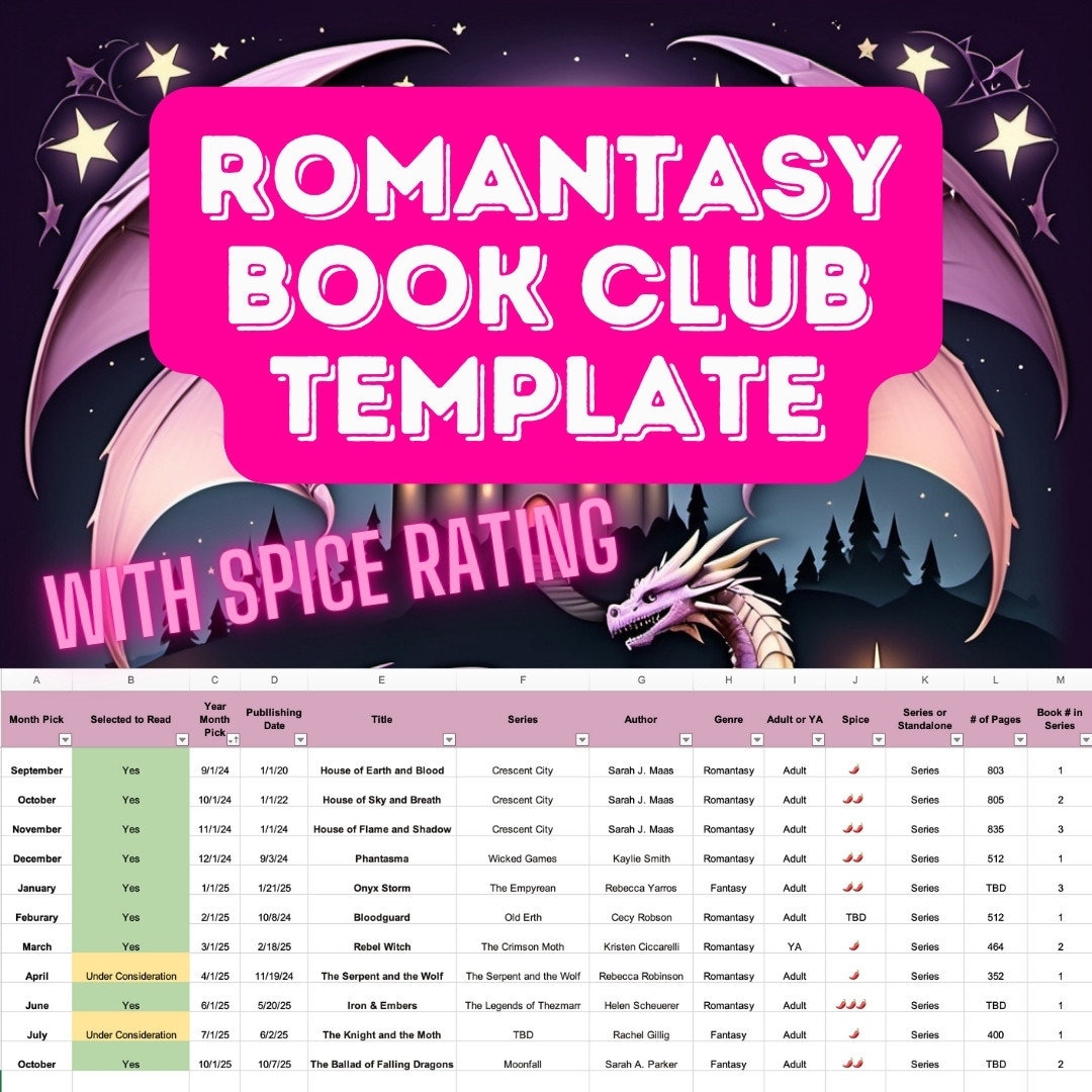 Romantasy Book Club Excel Template Reading Schedule Questions Etsy