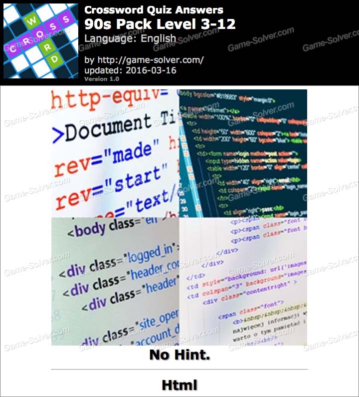 Crossword Quiz Crossword Puzzle 90s Pack Level 3 12 • Game Solver