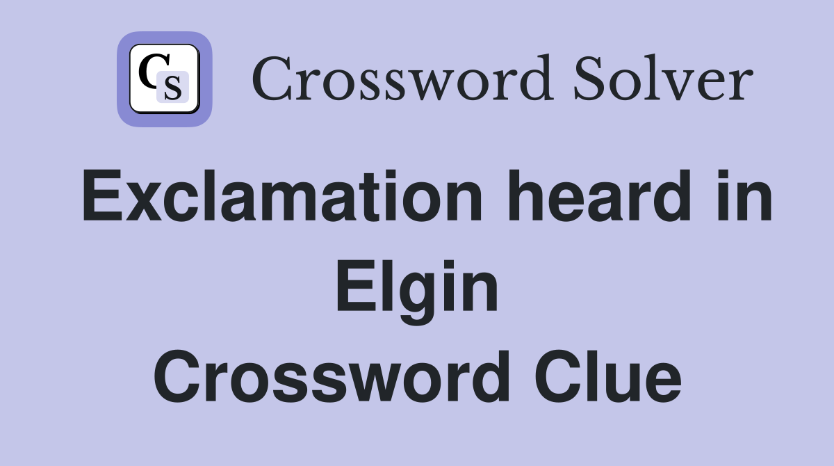 Exclamation heard in Elgin Crossword Clue Answers Crossword Solver