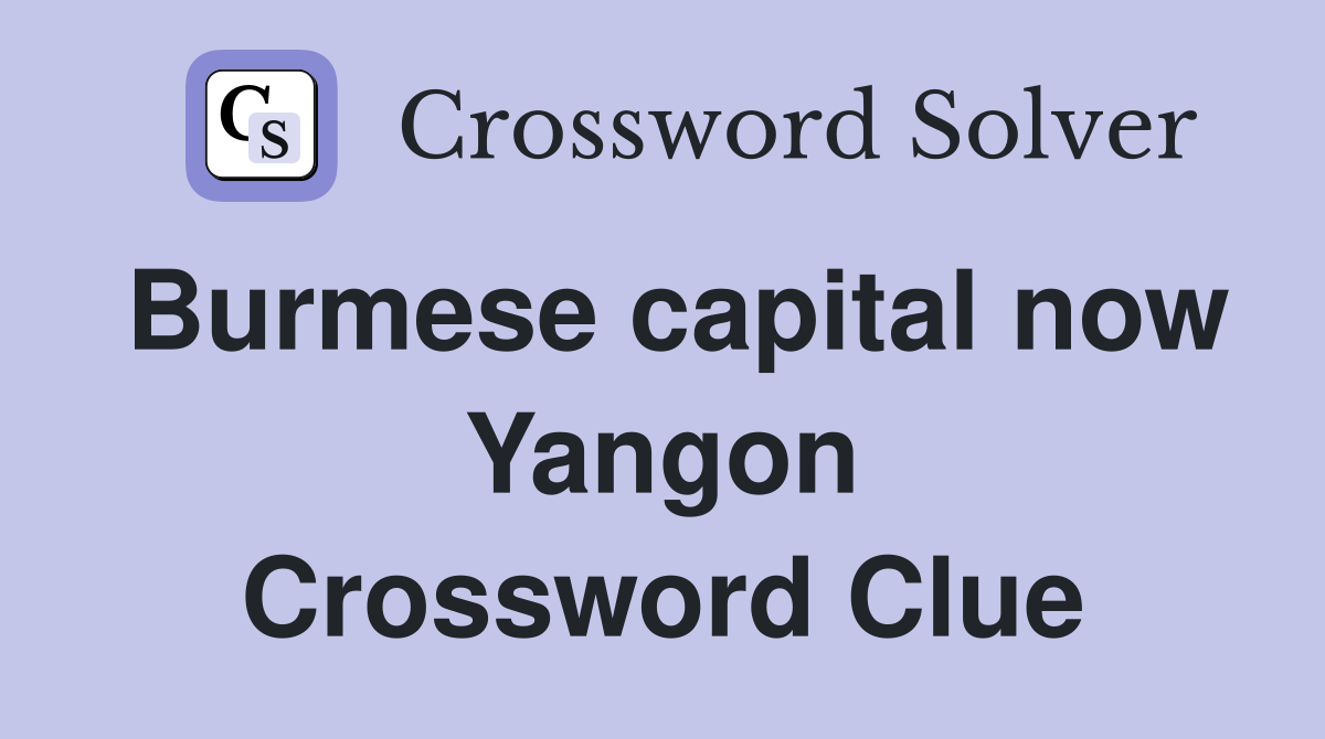 Burmese capital now Yangon Crossword Clue Answers Crossword Solver