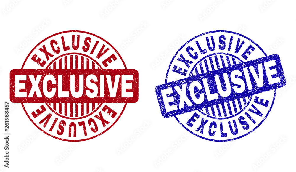 Grunge EXCLUSIVE round stamp seals isolated on a white background