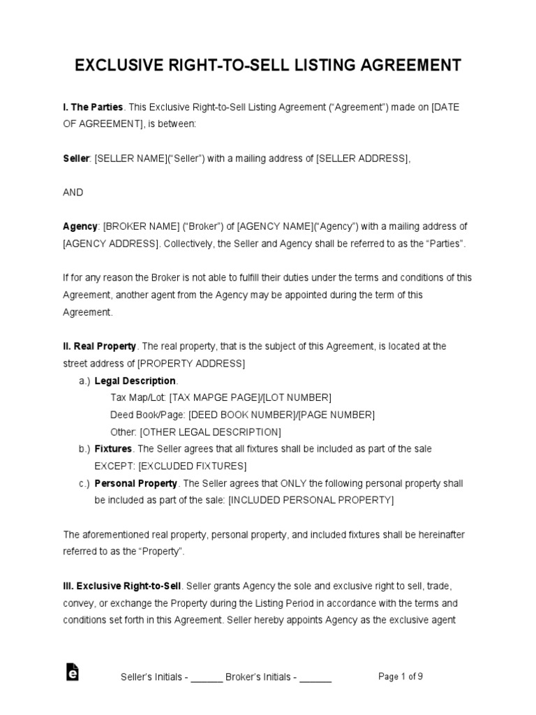 Exclusive Right To Sell Listing Agreement Download Free PDF