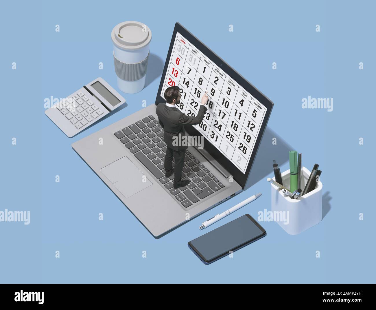 Business executive planning schedule with a digital calendar on his
