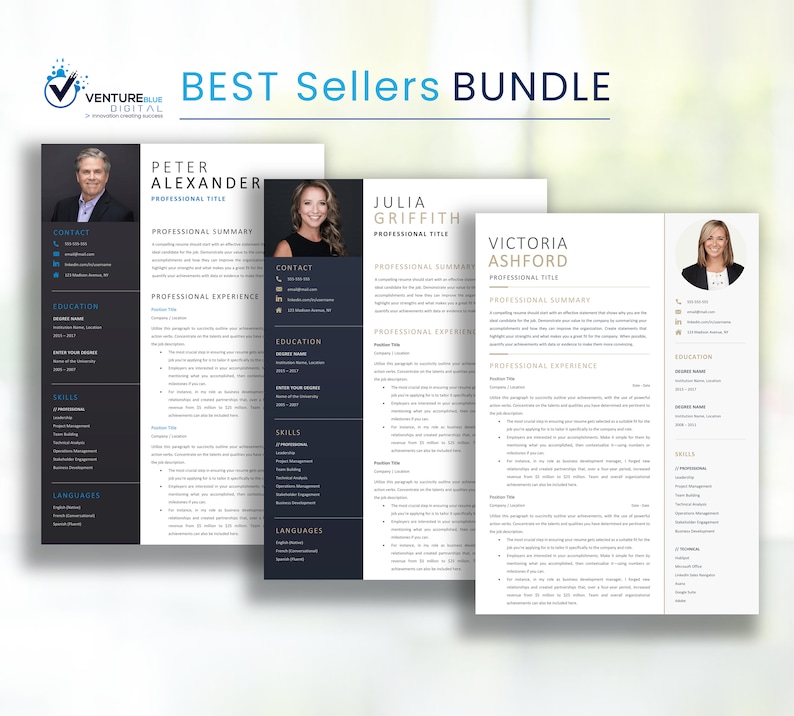 Executive RESUME Word TEMPLATE BUNDLE With Photo Editable
