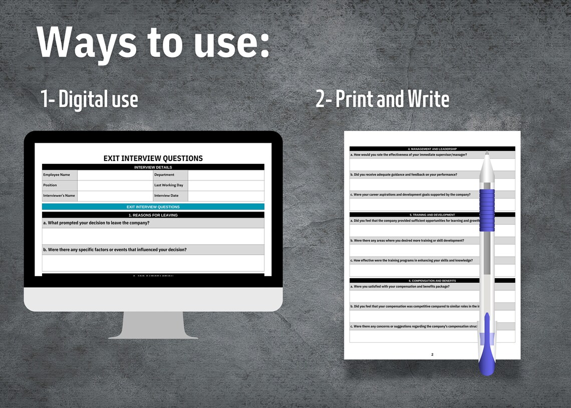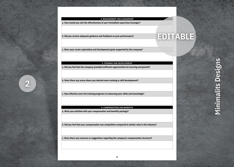 Exit Interview Questions Template (27 Question / 4 Sections) Etsy