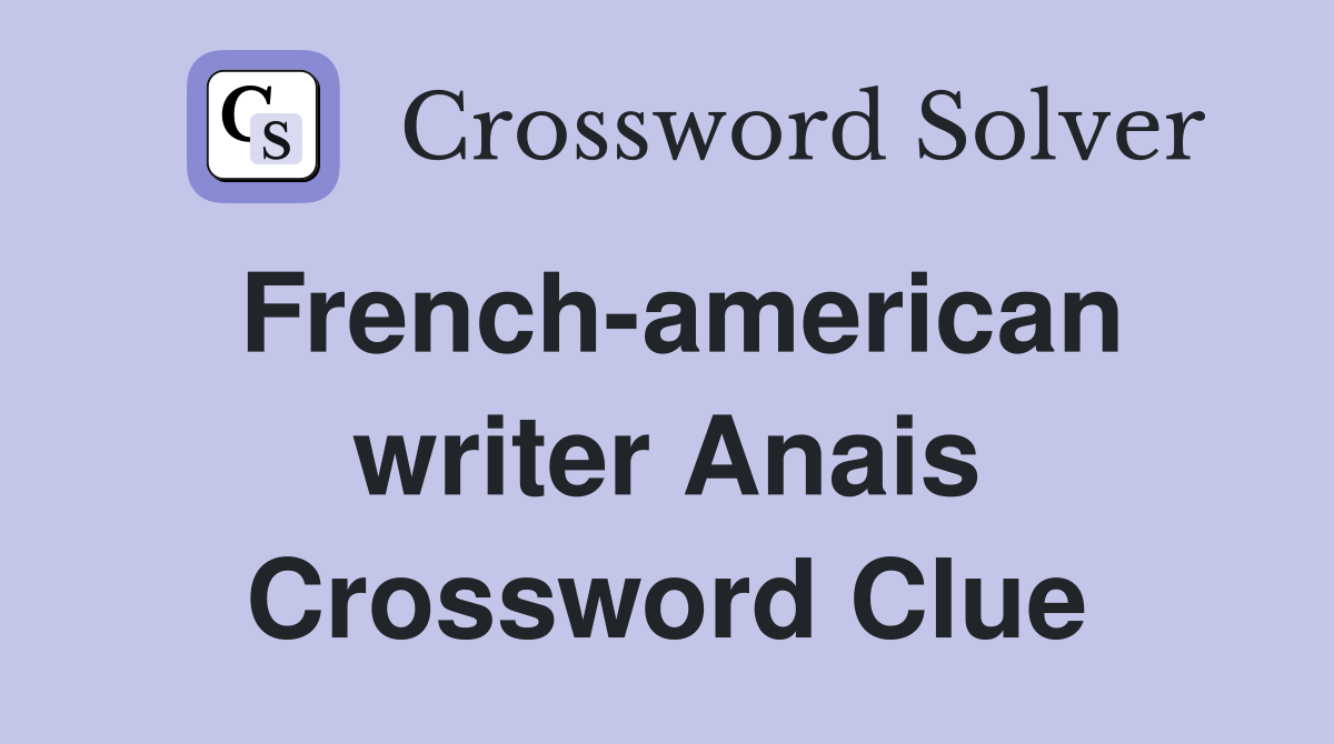 French american writer Anais Crossword Clue Answers Crossword Solver