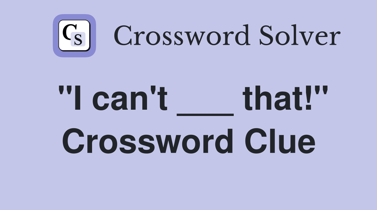 quot I can #39 t that quot Crossword Clue Answers Crossword Solver
