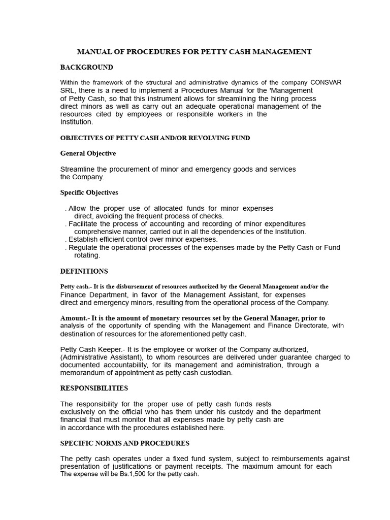 Procedures Manual for Managing Petty Cash 2 PDF Receipt Expense