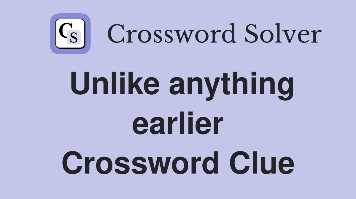 Unlike anything earlier Crossword Clue Answers Crossword Solver