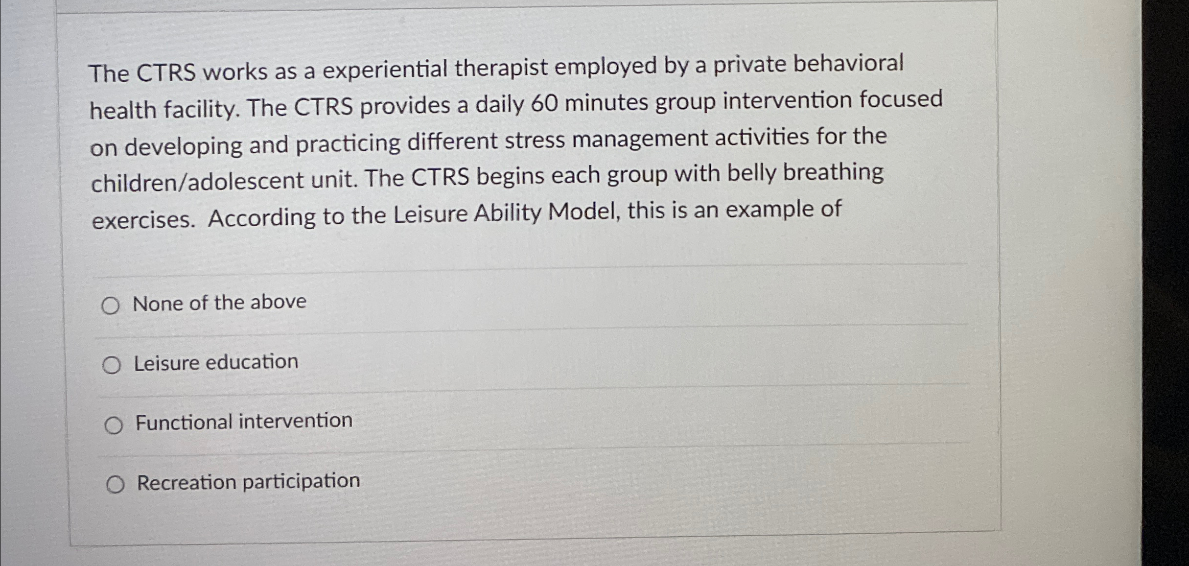 Solved The CTRS works as a experiential therapist employed Chegg com