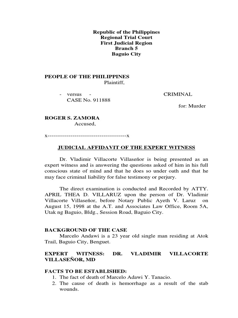 judicial affidavit of expert witness docx pdf Affidavit Bleeding