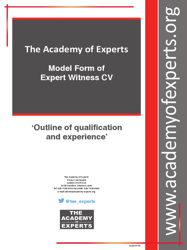 TAE Model Form of Expert Witness CV PDF Judiciary Of England And