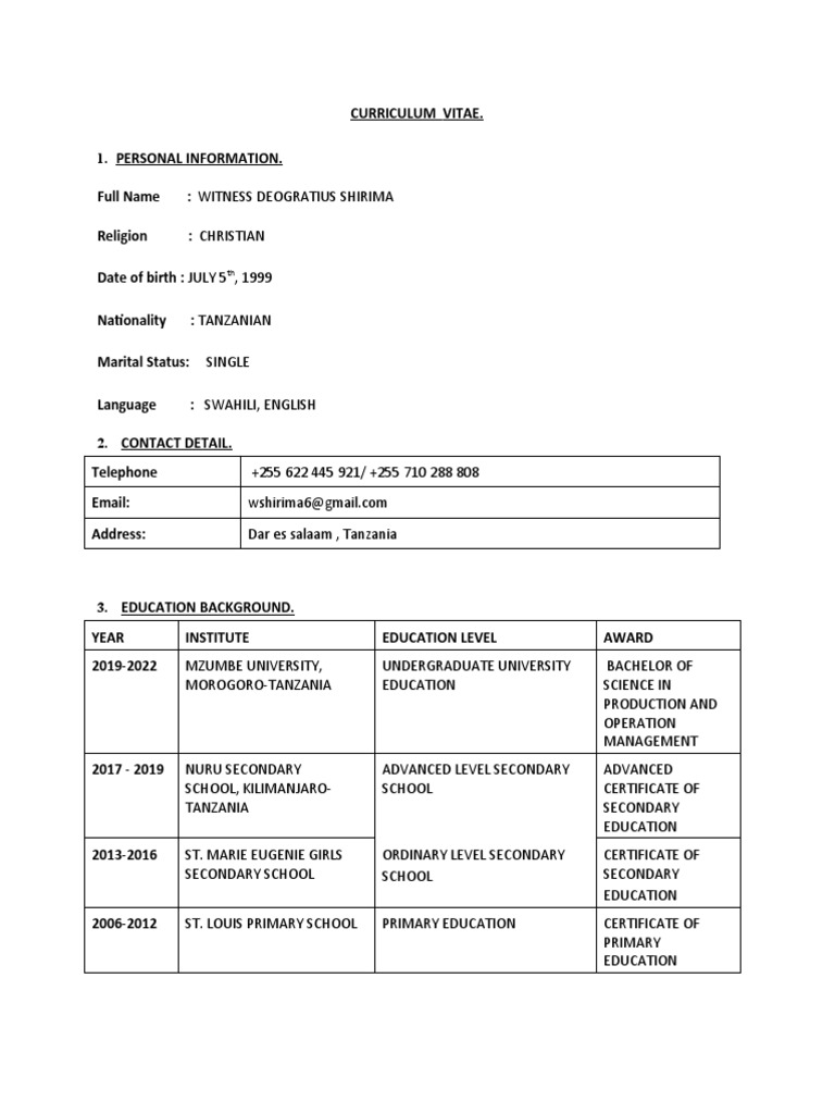 Witness CV 1 PDF Tanzania