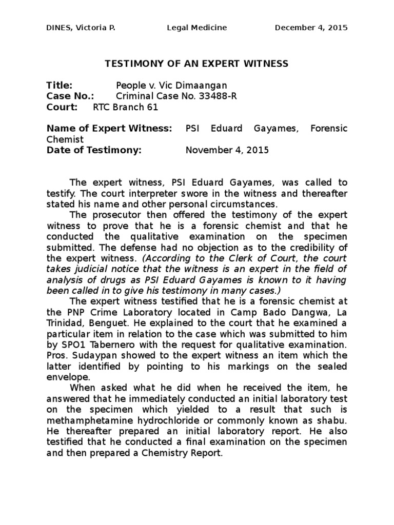 Testimony of An Expert Witness PDF Expert Witness Witness