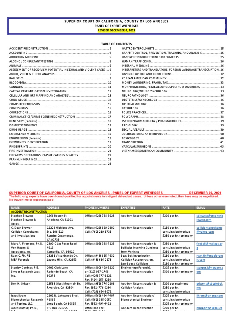 Superior Court of California County of Los Angeles Panel of Expert