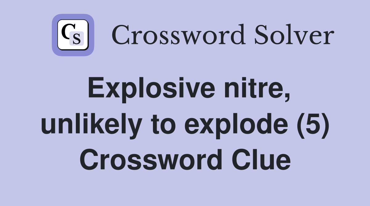 Explosive nitre unlikely to explode (5) Crossword Clue Answers
