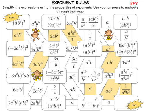 Exponent Rules Maze Worksheet Answer Key