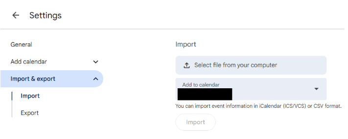 Exporting from Google Calendar