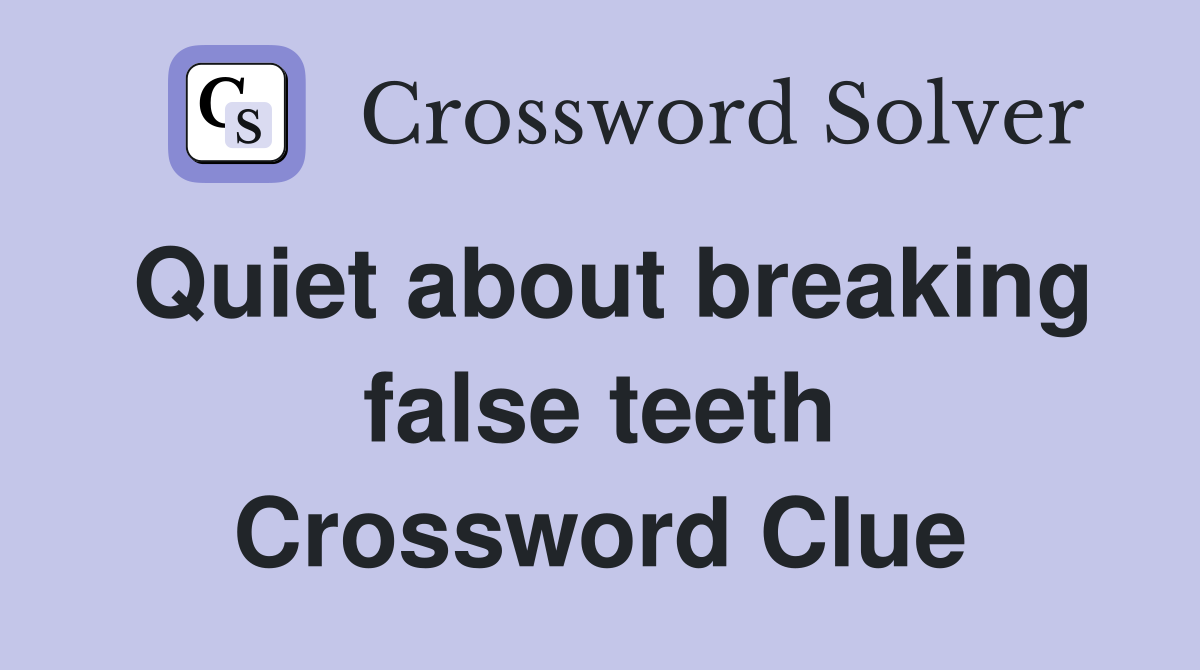 Quiet about breaking false teeth Crossword Clue Answers Crossword
