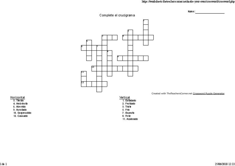 Free Printable Emotions Crossword Puzzle Crossword puzzle Crossword