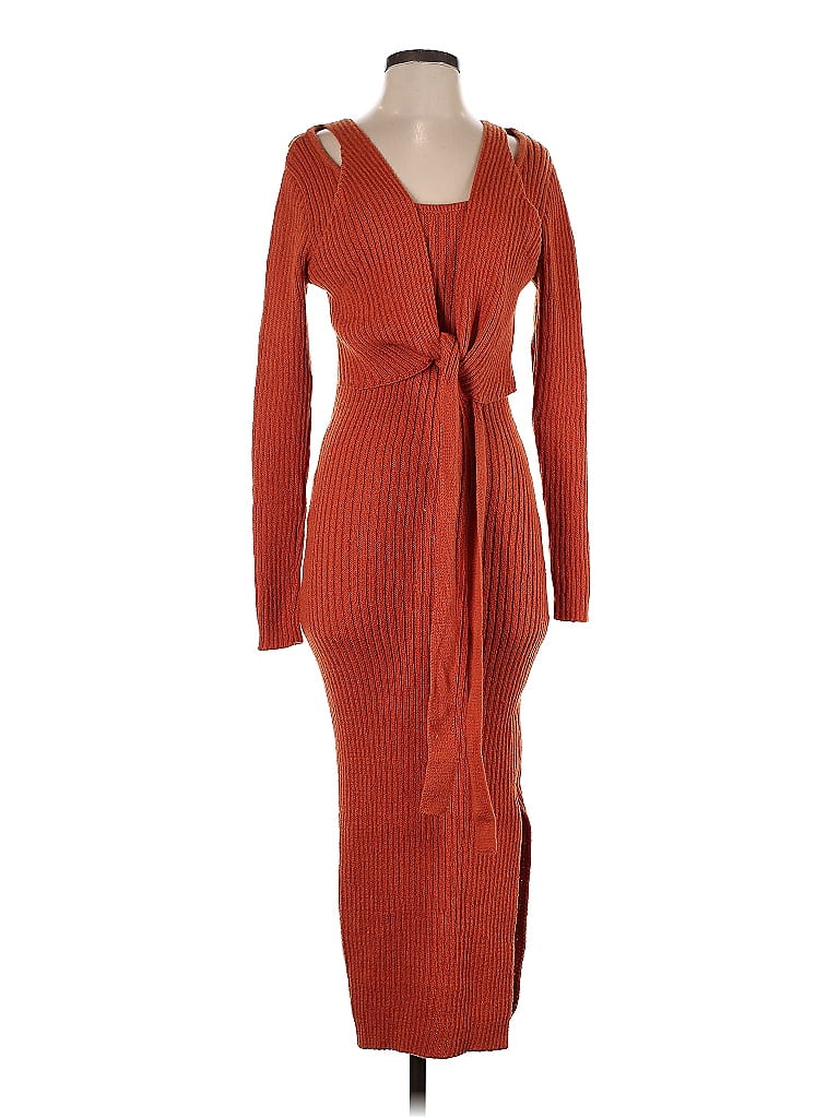 Shein 100% Polyester Solid Burnt Orange Orange Casual Dress Size S 50