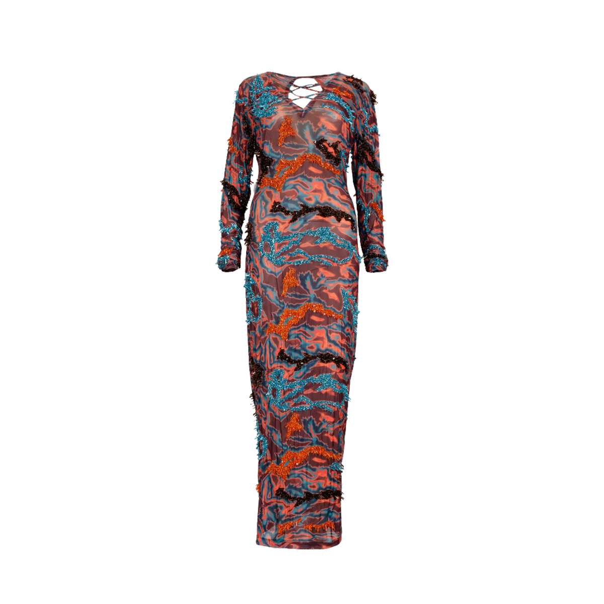 1970S HALSTON Gold Beaded Silk Famous Fireworks Fire Cracker Gown at