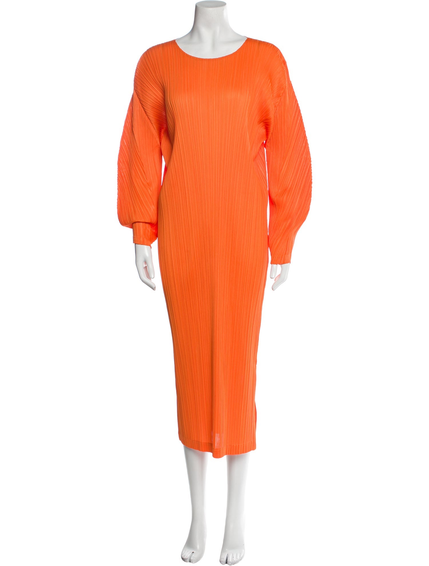 Pleats Please Issey Miyake Scoop Neck Long Dress Orange Dresses
