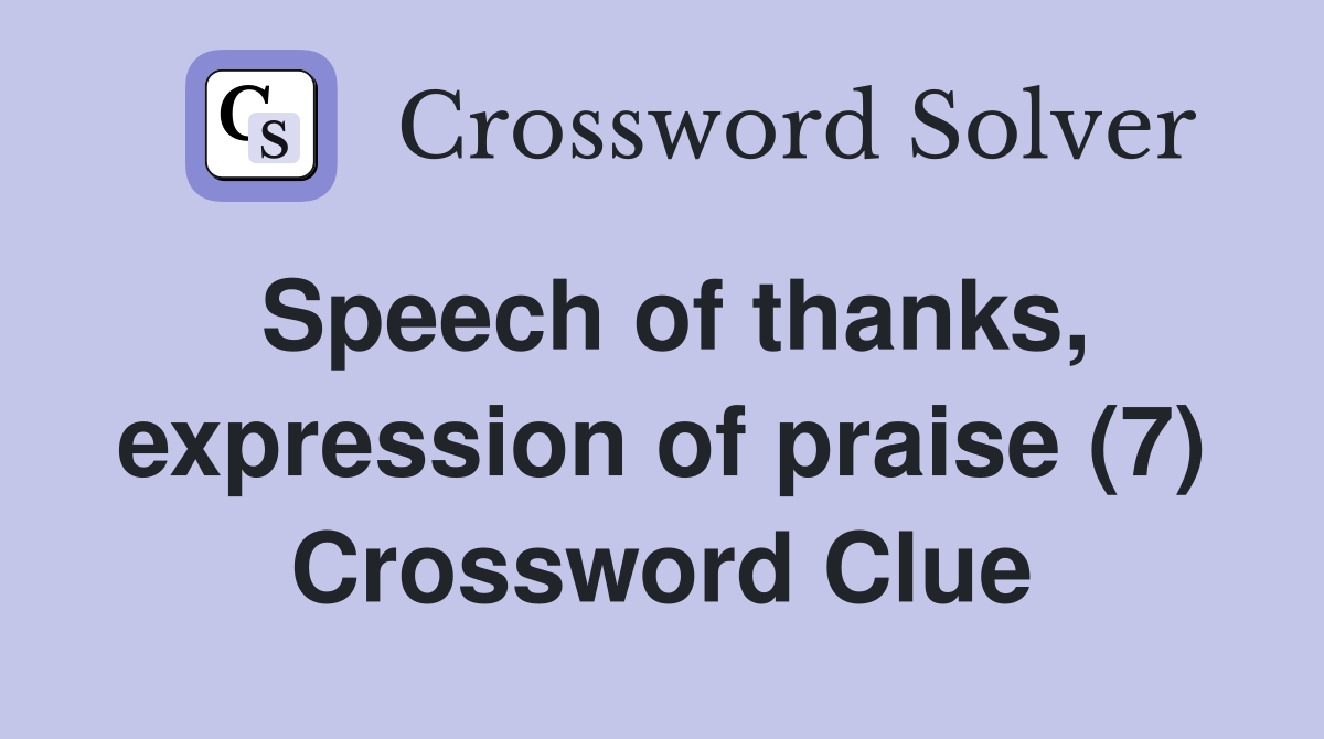 Speech of thanks expression of praise (7) Crossword Clue Answers