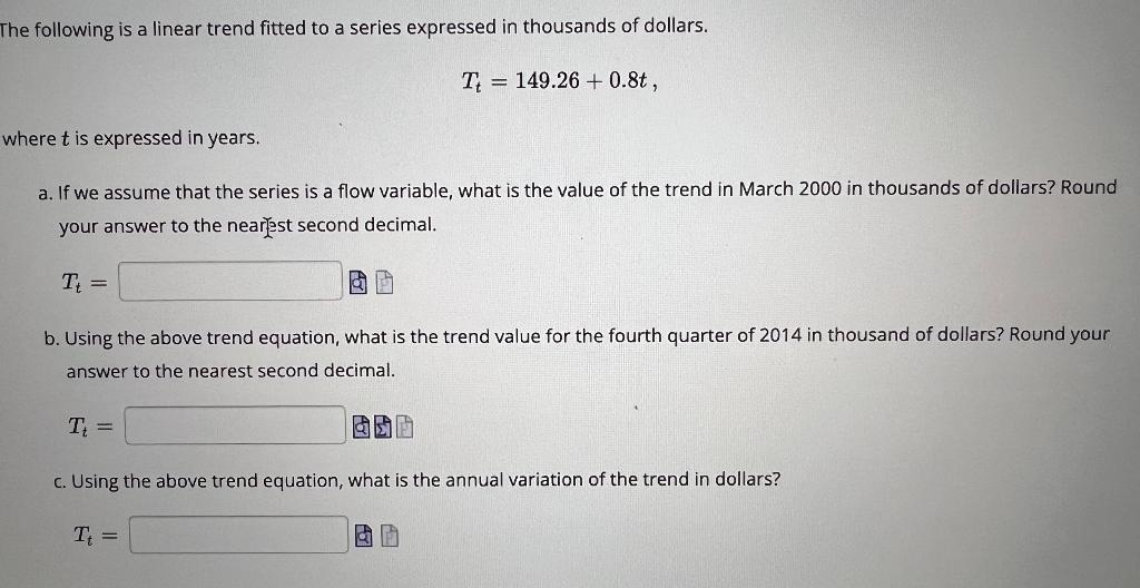 Solved The following is a linear trend fitted to a series Chegg com