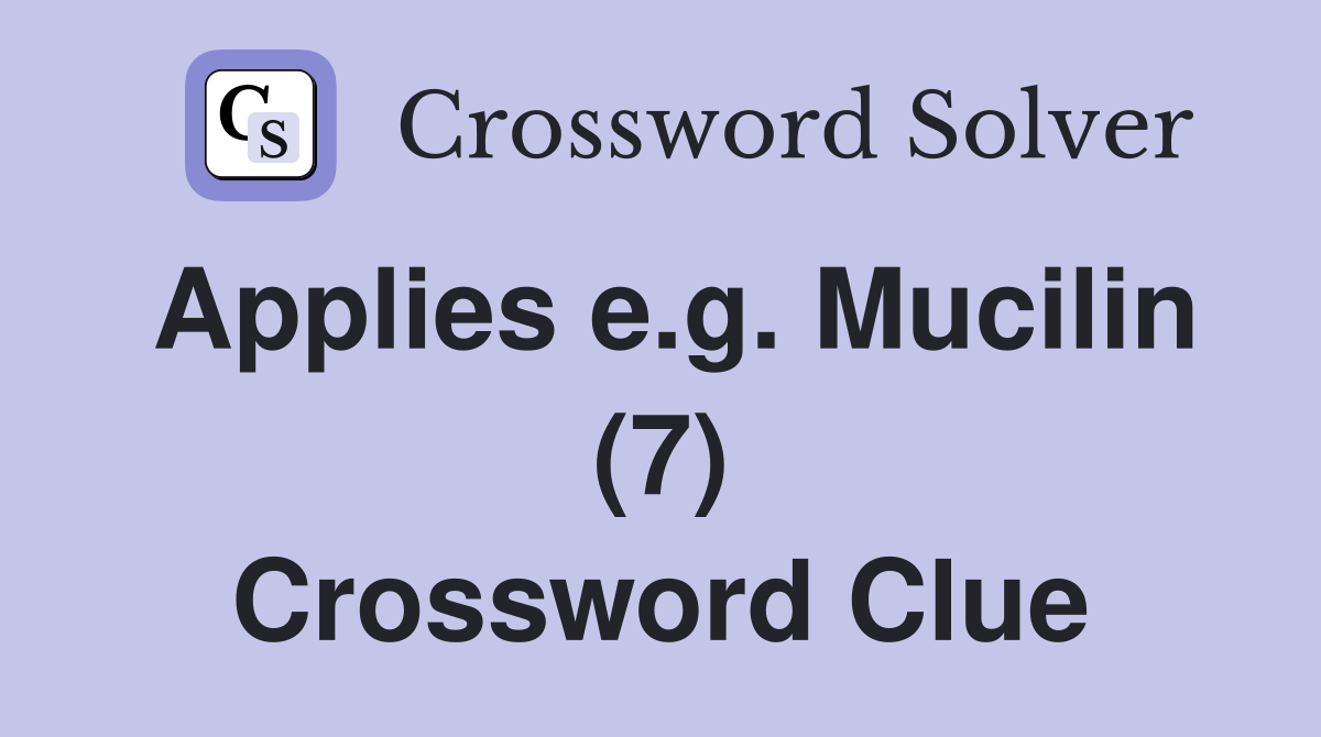 Applies e g Mucilin (7) Crossword Clue Answers Crossword Solver