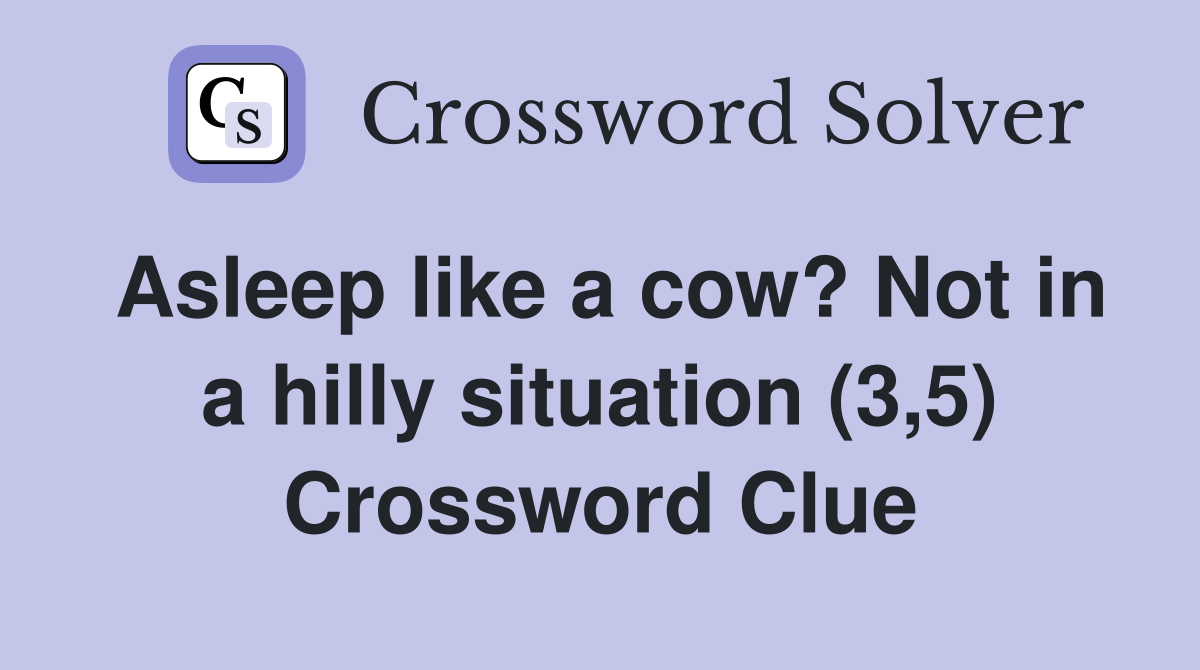 Asleep like a cow? Not in a hilly situation (3 5) Crossword Clue